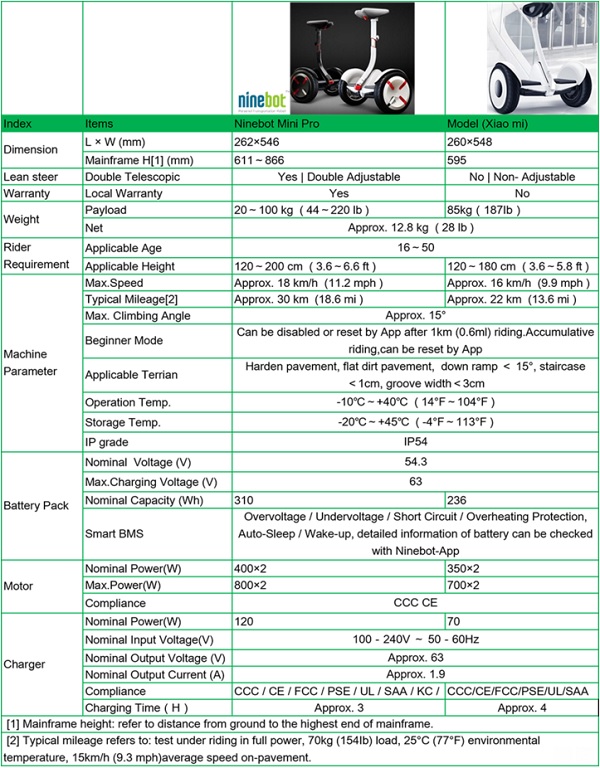 | Ninebot mini của Xiaomi (hàng nội địa trung quốc) | Ninebot Mini Pro |