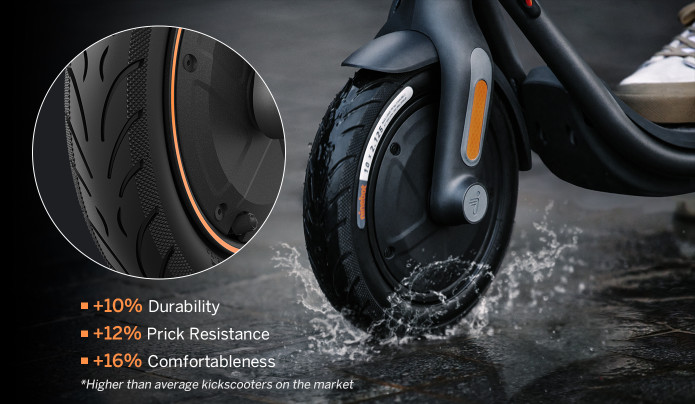 Được cải tiến với lớp lót polyme và gai lốp chống mài mòn, F Series mang đến trải nghiệm lái cao hơn với sự kết hợp của sự thoải mái và độ bền để tăng độ an toàn khi lái xe. So với các loại lốp trung bình trên thị trường, lốp hơi 10 inch giúp tăng độ bền, khả năng chống châm chích và tạo cảm giác thoải mái.