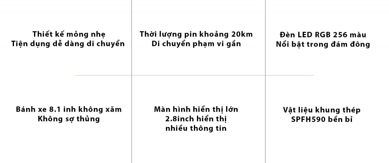 – Chế độ thể thao: Tốc độ nhanh hơn, Công suất mạnh hơn với tối đa. tốc độ lên đến 20 km / h.