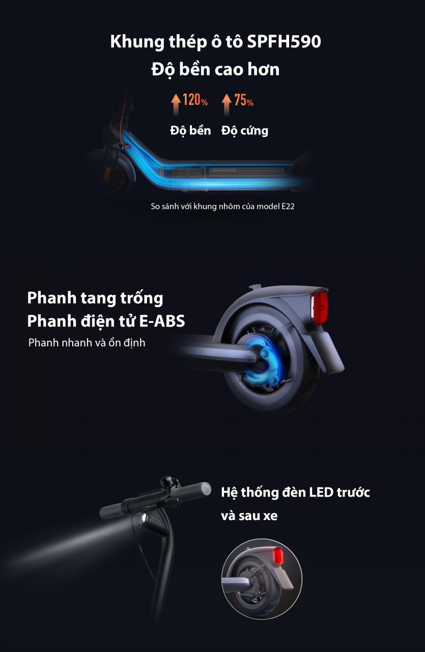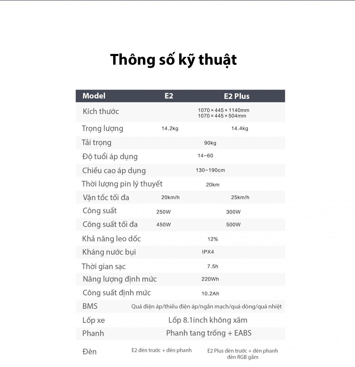 Sê-ri E2 đi kèm với lốp rỗng bên trong 8,1 inch mới được phát triển, mang lại trải nghiệm lái tuyệt vời: chống đâm thủng, không cần bảo dưỡng và khả năng hấp thụ sốc tốt hơn.