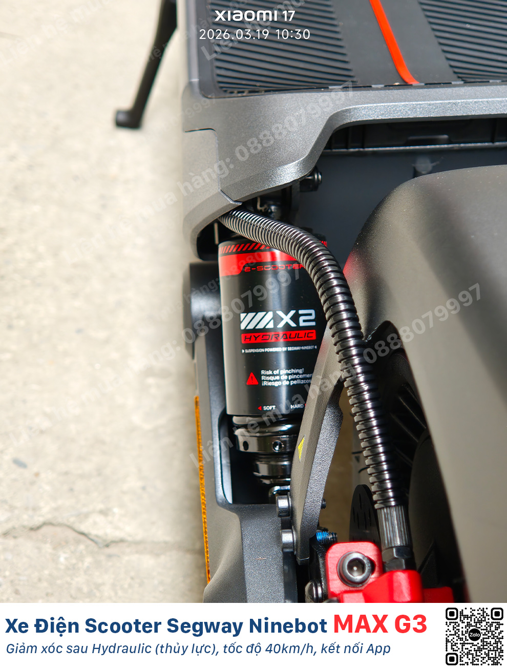 - Động cơ mạnh mẽ: Động cơ công suất 850W (công suất tối đa 2000W) cho phép xe leo dốc lên tới 30%.