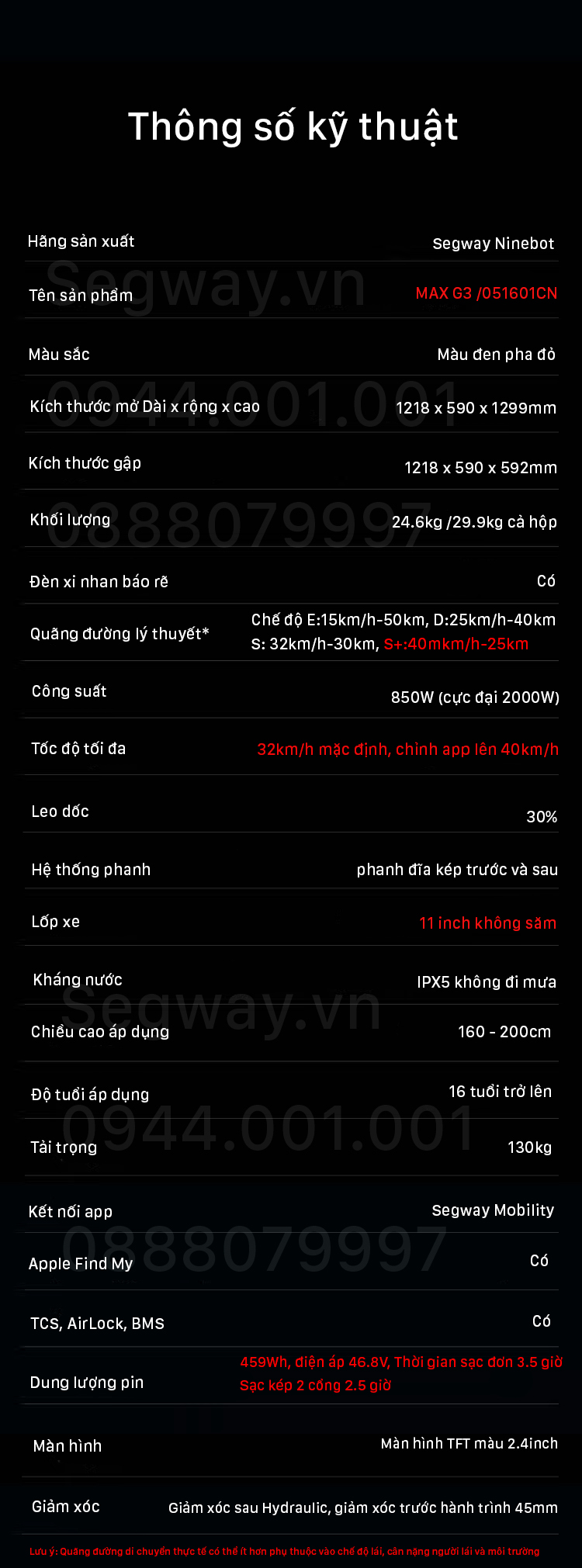 - Phạm vi hoạt động: Segway MAX G3 có thể di chuyển lên đến 50km trong điều kiện lý tưởng và 25km ở tốc độ tối đa.