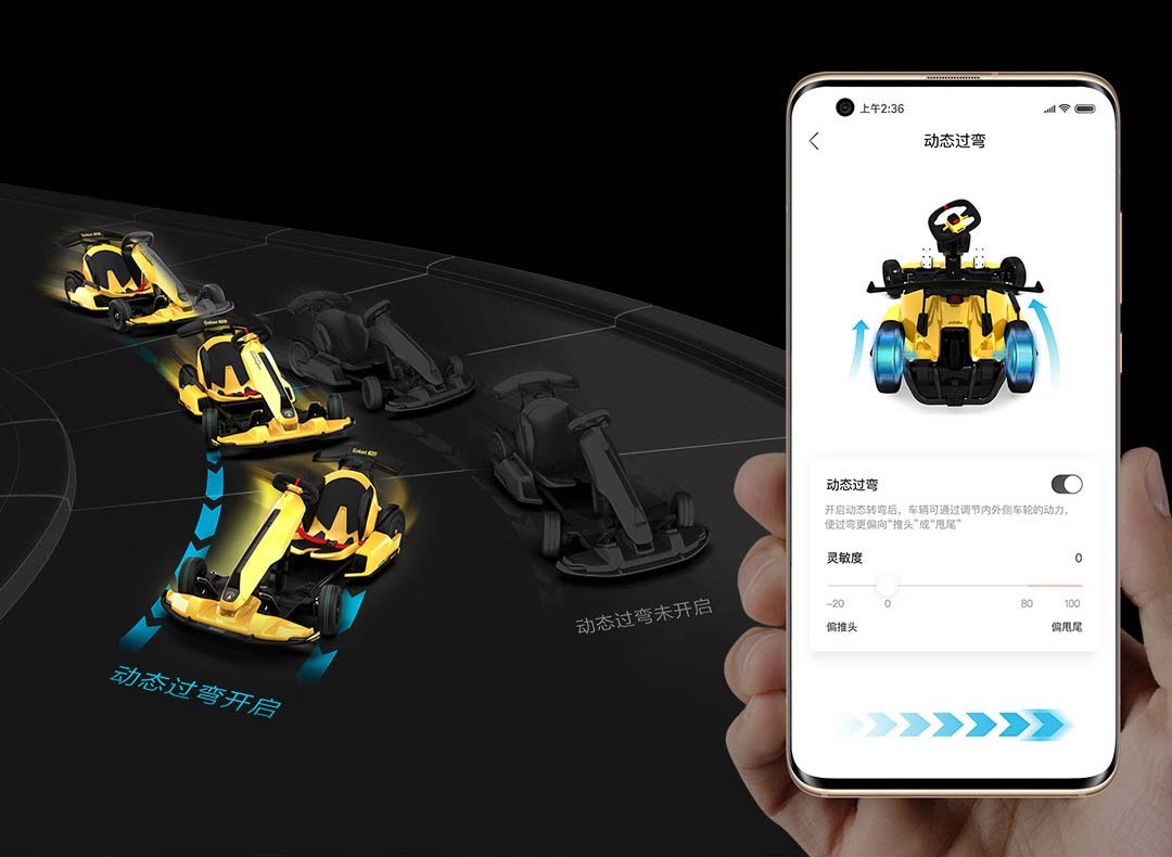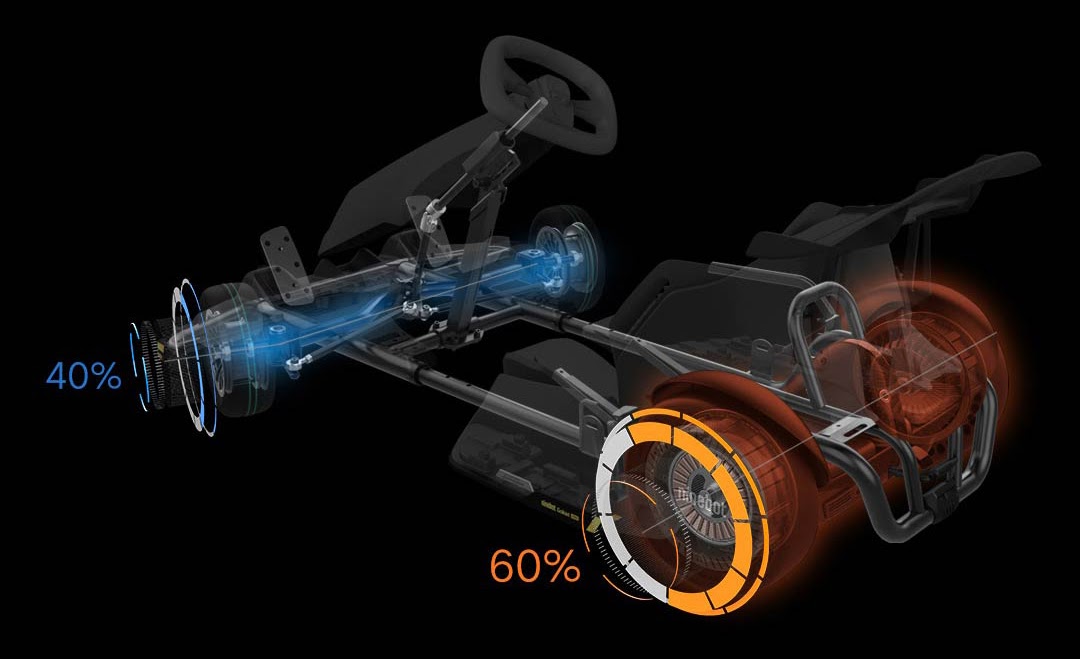 Ngoài ra, tỷ lệ đối trọng trước và sau của thân xe là 40:60 giúp người dùng tăng tốc nhanh và linh hoạt hơn. Khi vào cua ở tốc độ cao, bạn sẽ dễ dàng tận hưởng được cảm giác hồi hộp mà phiên bản “xe đua” mang lại. Đặc biệt, người dùng còn có thể truy cập vào App để điều chỉnh sức mạnh của từng bánh xe nhằm thay đổi các đặc điểm vào cua và trải nghiệm những cảm giác lái khác nhau.