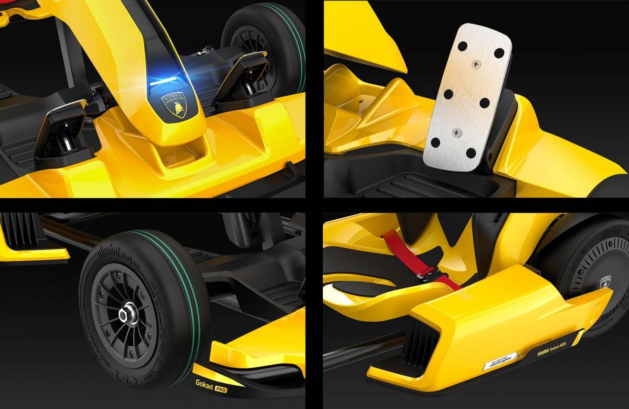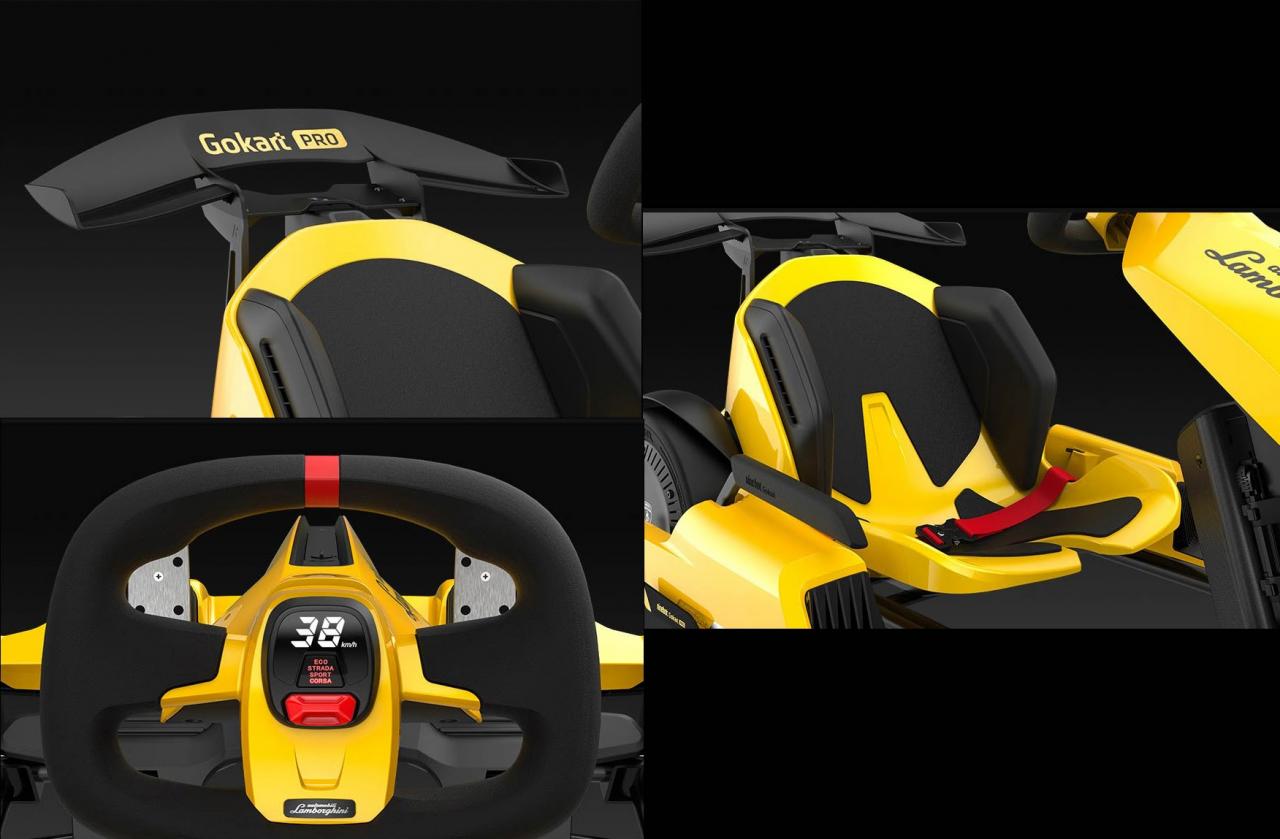 Nhờ sự gia công tỉ mỉ từ hình dáng thân xe bên hông cho đến thiết kế năng động của hệ thống đèn chiếu sáng phía trước, tất cả đều giúp GoKart Pro toát lên nét quyến rũ độc đáo của một chiếc xe đua. Vì là phiên bản giới hạn trên toàn thế giới nên mỗi chiếc xe điện GoKart Pro Lamborghini đều có biển số xe riêng.